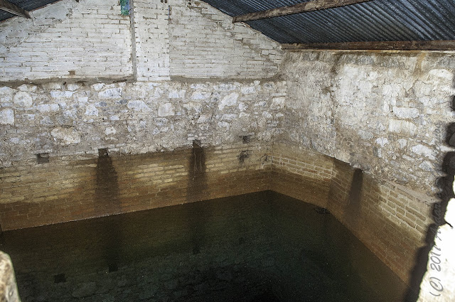 No podemos evitar cotillear un poco en su interior que contiene una balsa de cristalina agua. En las paredes podemos ver varias canalizaciones por las que sigue nutriéndose, así como el nivel habitual de acopio.